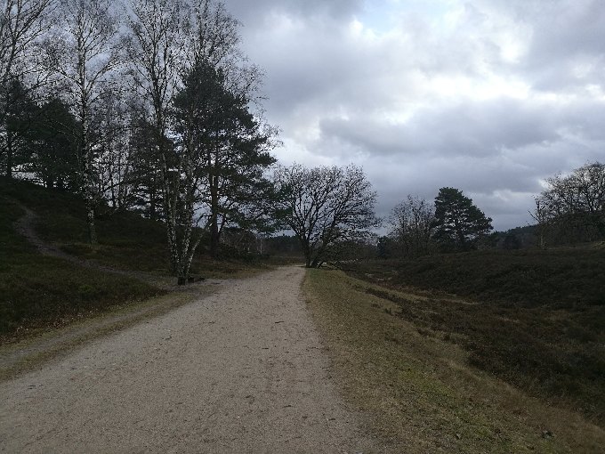 Gestartet wird an der Schranke an der Straße Fischbektal.Kleine Auftaktrunde: An der zweiten Abbiegung rechts, bis zur nächsten Kreuzung und dort wieder rechts. Auf der rechten Seite erscheint der Parkplatz, den wir komplett rechts liegen lassen und erst hinter einem kleinen Wall nach rechts in Richtung Parkplatzeinfahrt laufen. Von dort geht es wieder zur Schranke.