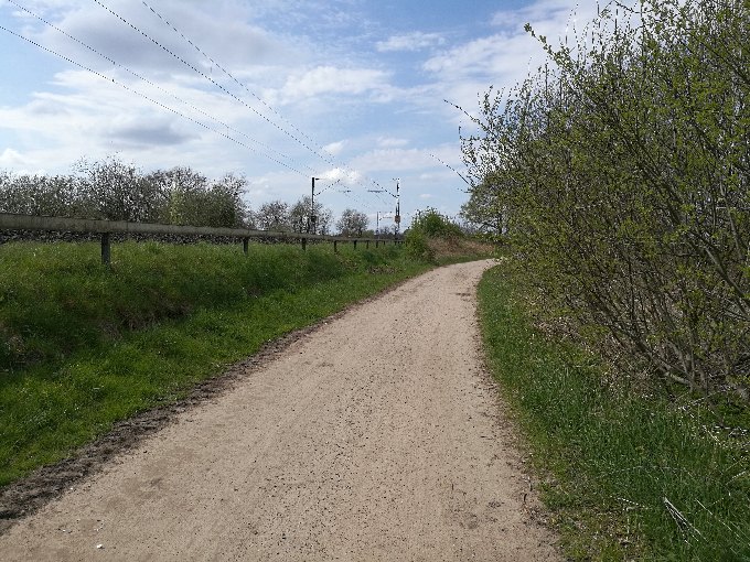 Ein GPX-Track (Download siehe unten) ist nicht notwendig, denn es geht immer geradeaus an der Bahn entlang. Man muss nur wissen, wo man umdrehen muss, bzw. welcher Richtung man laufen muss und das ist oben erklärt.
