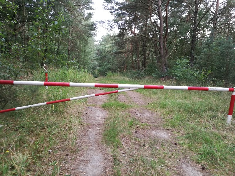 Hier im Wald geht es immer geradeaus. Bei KM 1,5 kommt die zweite Schranke (siehe Bild oben). Diese versperrt einem den Weg, so dass man sie (am besten rechts) umgehen sollte. Drüber weg oder unten drunten geht auch - der direkte Weg ist vermessen! Es geht weiter im leichten bergauf und bergab, bis man ca. bei KM 1,9 aus dem Wald kommt und einen langen Weg leicht bergauf vor sich sieht, den man auch folgt.