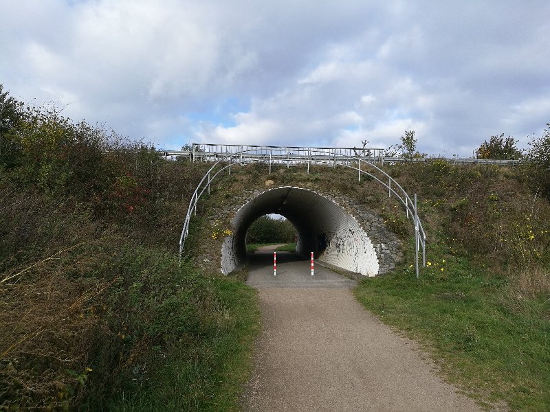 Die Strecke: Es handelt sich um eine Pendelstrecke (insgesamt 6,021 km), die etwa auf der Hälfte der Gesamtstrecke (genau gesagt bei KM 2,905, bzw. KM 3,116) beginnt und auch dort endet. Die Strecke wurde am 25.10.2022 vermessen mit Messrad Geotec M10 mit Umdrehungszähler Typ Hengstler 225. Die Strecke hat nahezu keine Höhenmeter, besteht überwiegend aus Asphalt (ca. 66%) und festen Sandwegen (ca. 34%) und es ist zwischendrin mehrfach ein grünes Tor zu öffnen (Tipp: Auf dem Hinweg das mittlere Tor nehmen, auf dem Rückweg in Laufrichtung das rechte Tor nehmen, dann öffnet ihr beide Tore aufdrückend jeweils in Laufrichtung, was deutlich einfacher ist als daran zu ziehen).Gestartet wird in westlicher Richtung an der Bahnstrecke entlang. Kurz vor Erreichen der B3 neu (die hier auf einer Aufschüttung oberhalb entlang führt), biegt der Weg nach rechts als befestigter Sandweg ab und nach kurzer Zeit unterquert der Weg die B3 neu in einem Tunnel. Den Weg bis zum Ende laufen, wo an der T-Kreuzung nach rechts (dann wieder auf Asphalt) abzubiegen ist. Bei nächster Gelegenheit (diese bietet sich nach ca. 200 Metern), wieder nach rechts abbiegen. Diesen Weg laufen wir bis zum Ende und stoßen dort an einer Ampel wieder auf die B3 neu und wenden dort. Und dann den Weg wieder zurück.