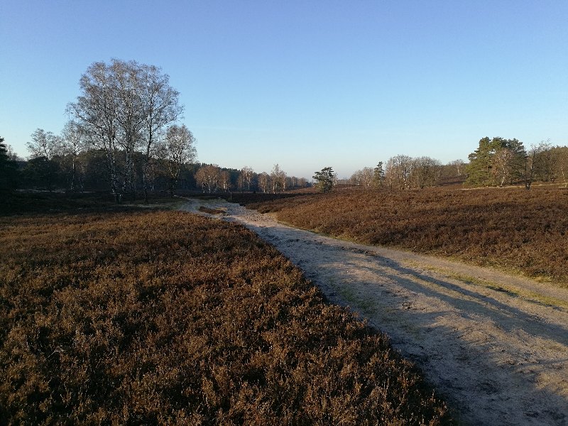 Gestartet wird an der Schranke an der Straße Fischbektal.Kleine Auftaktrunde: An der zweiten Abbiegung rechts, bis zur nächsten Kreuzung und dort wieder rechts. Auf der rechten Seite erscheint der Parkplatz, den wir komplett rechts liegen lassen und erst hinter einem kleinen Wall nach rechts in Richtung Parkplatzeinfahrt laufen. Von dort geht es wieder zur Schranke.